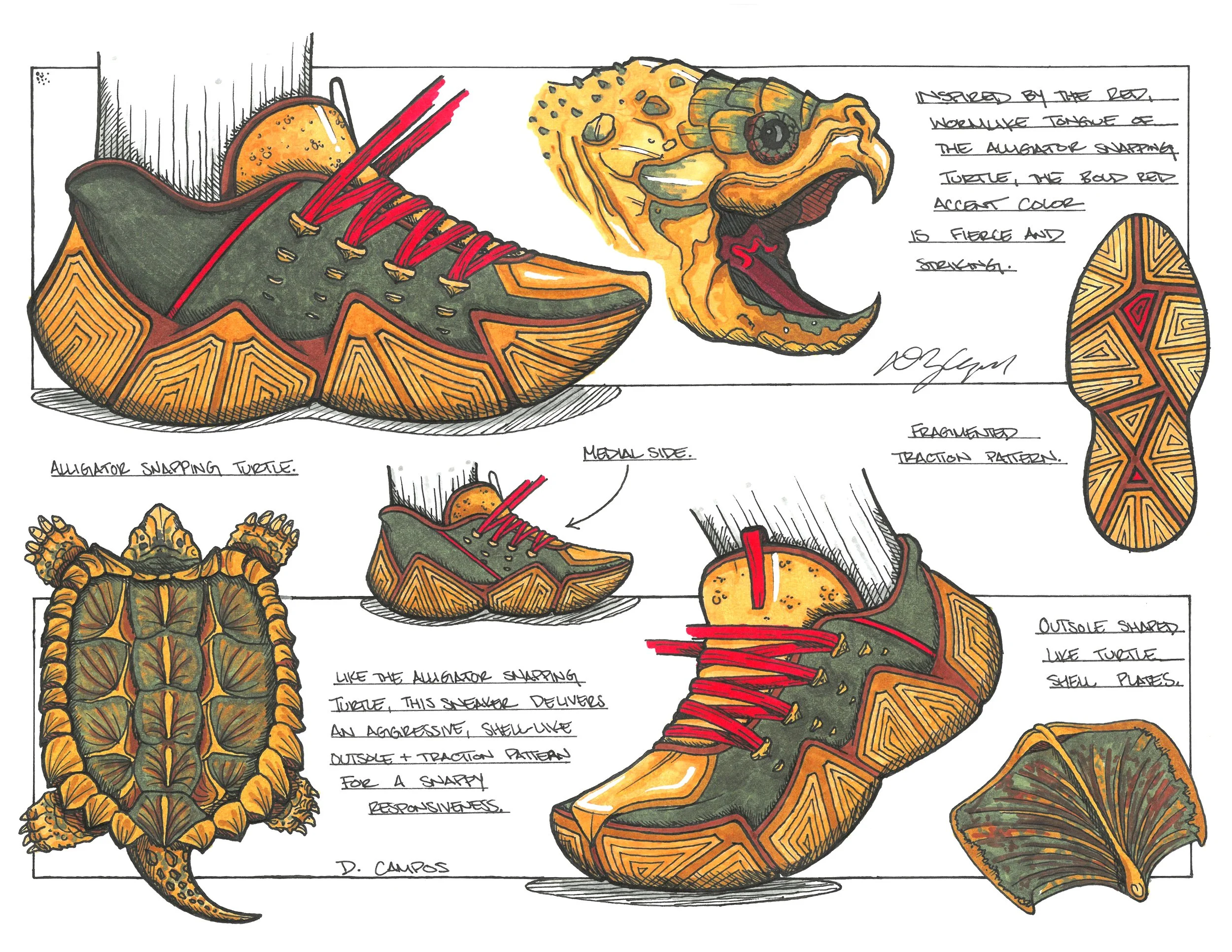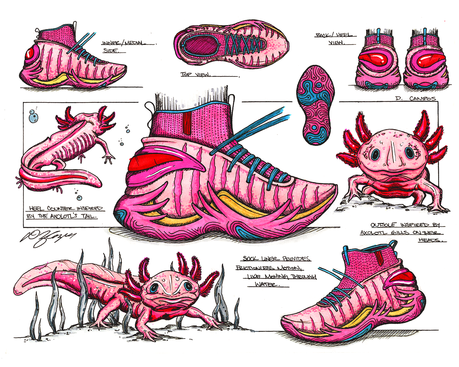 Solea Animæ is a personal illustration project exploring conceptual basketball sneaker designs inspired by the unique traits of various animals. Each piece blends color, texture, form, and pattern to reflect the essence of its subject. Once complete, the collection will be compiled into a book showcasing each design individually.
